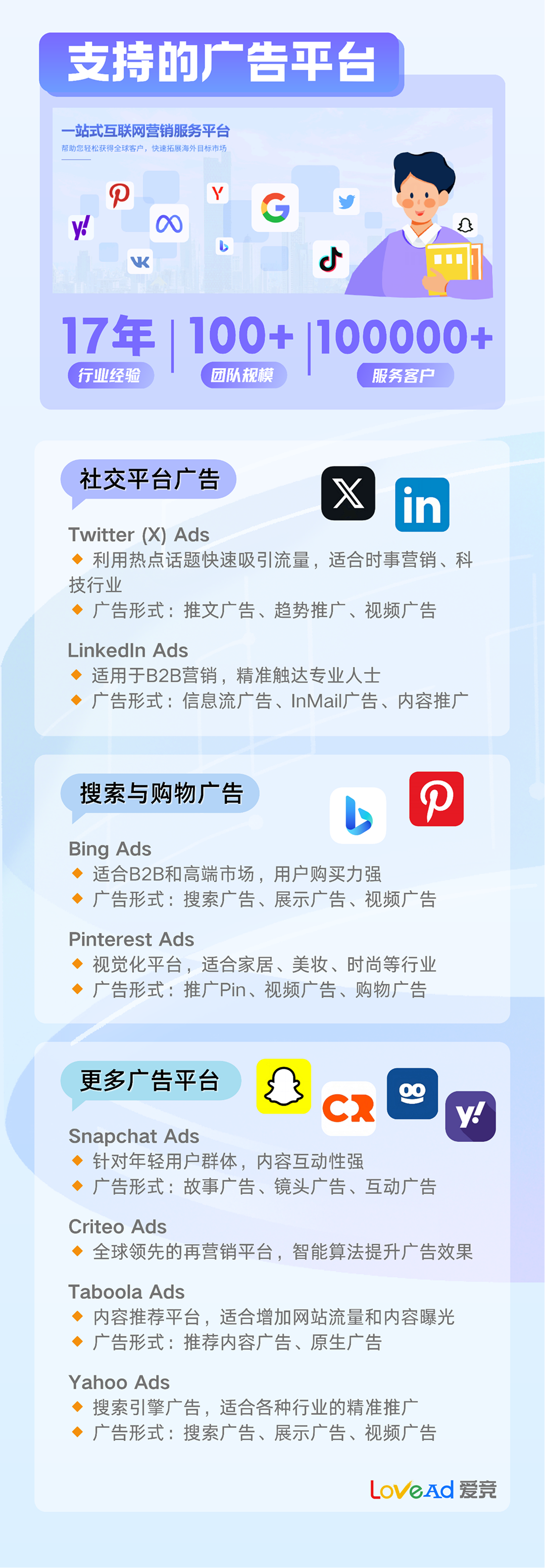 我们拥有经验丰富的团队,覆盖全平台投放,助力客户高效推广。