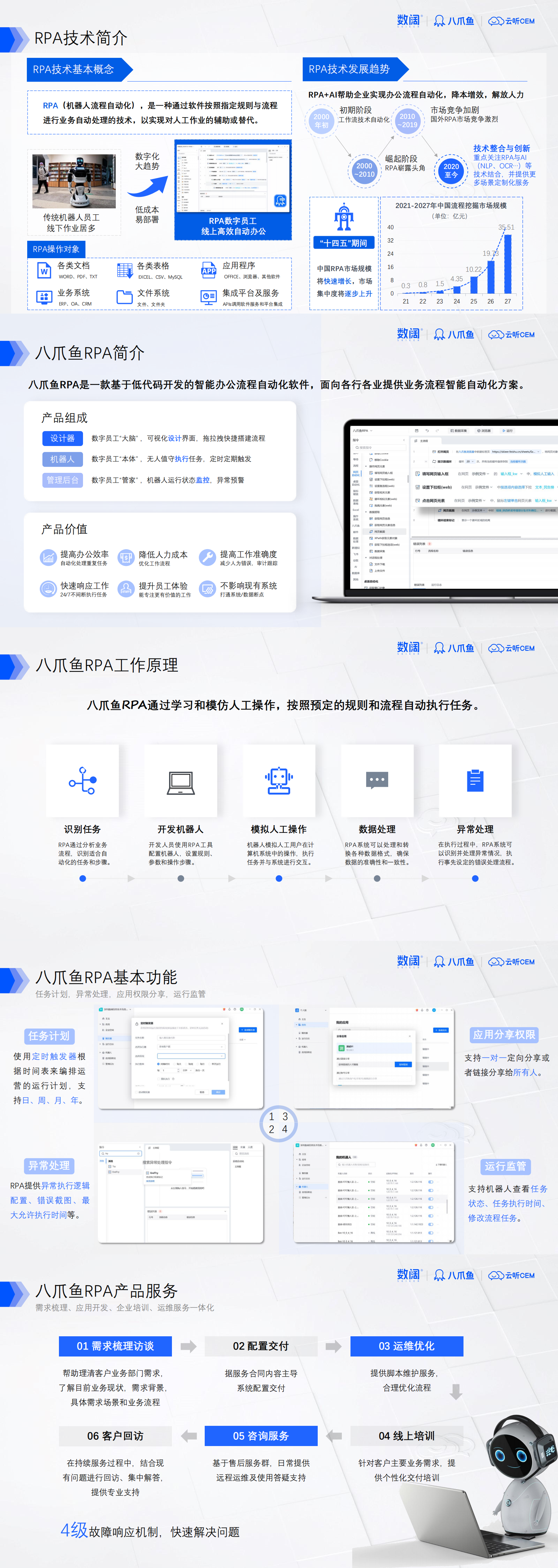 低门槛,高度自动化,RPA;云端部署运行,多种格式数据精准识别;智能识别算法批量采集,AI组件开箱即用;海量数据源获取,海外数据采集,海量模版开箱即用