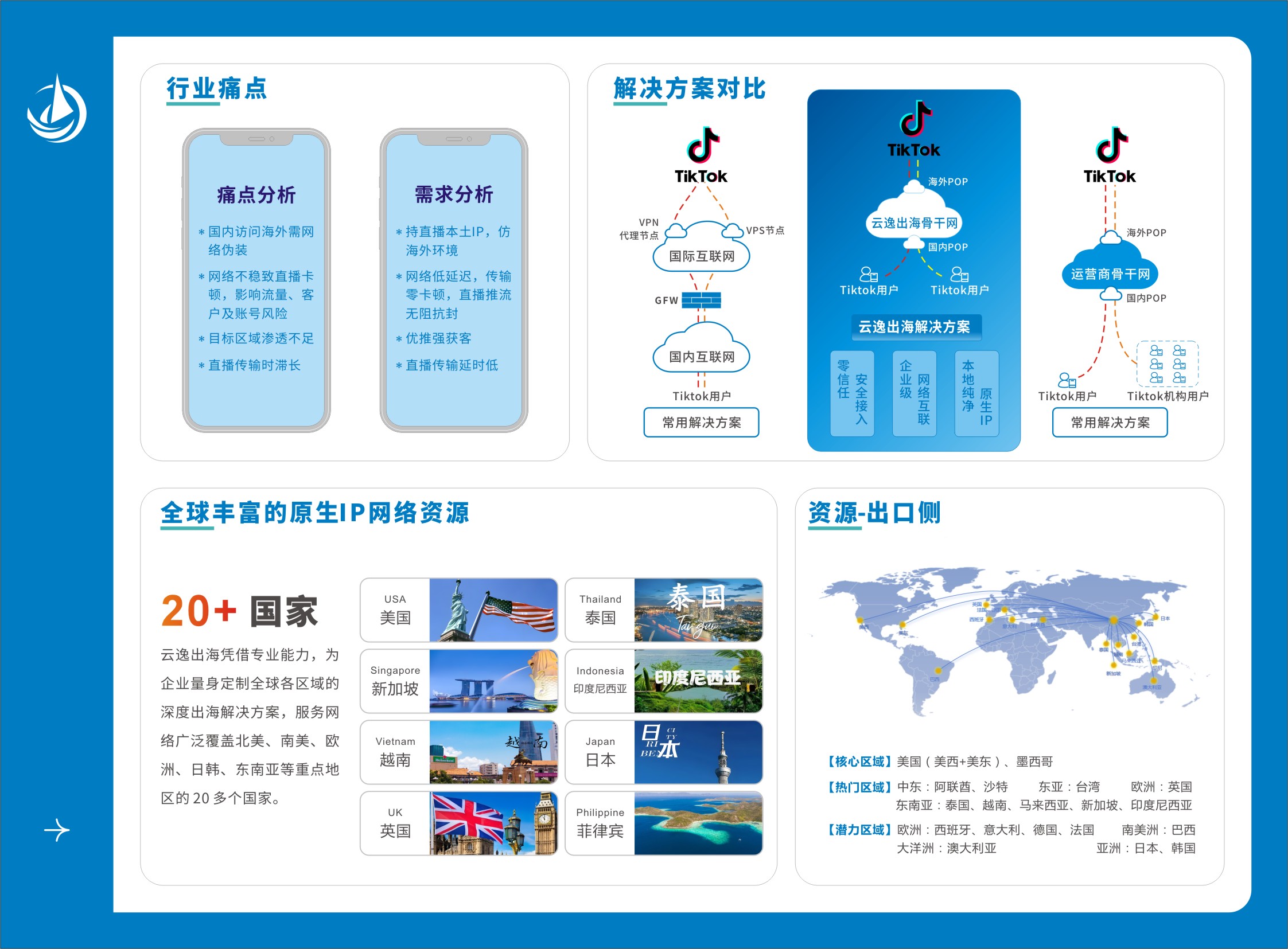 上市公司合规报白出海专线网络,拒绝违规搭建,规避法律风险;搭载字节官方旗下合规飞连App,非小火箭等违规工具,更加 稳定高效、安全合法;独享原生住宅IP(账号即IP),有效做到环境隔离;支持海外TikTok FaceBook Instagram YouTube等多主流平台;(7*24小时售后服务)及时解决网络运营问题
