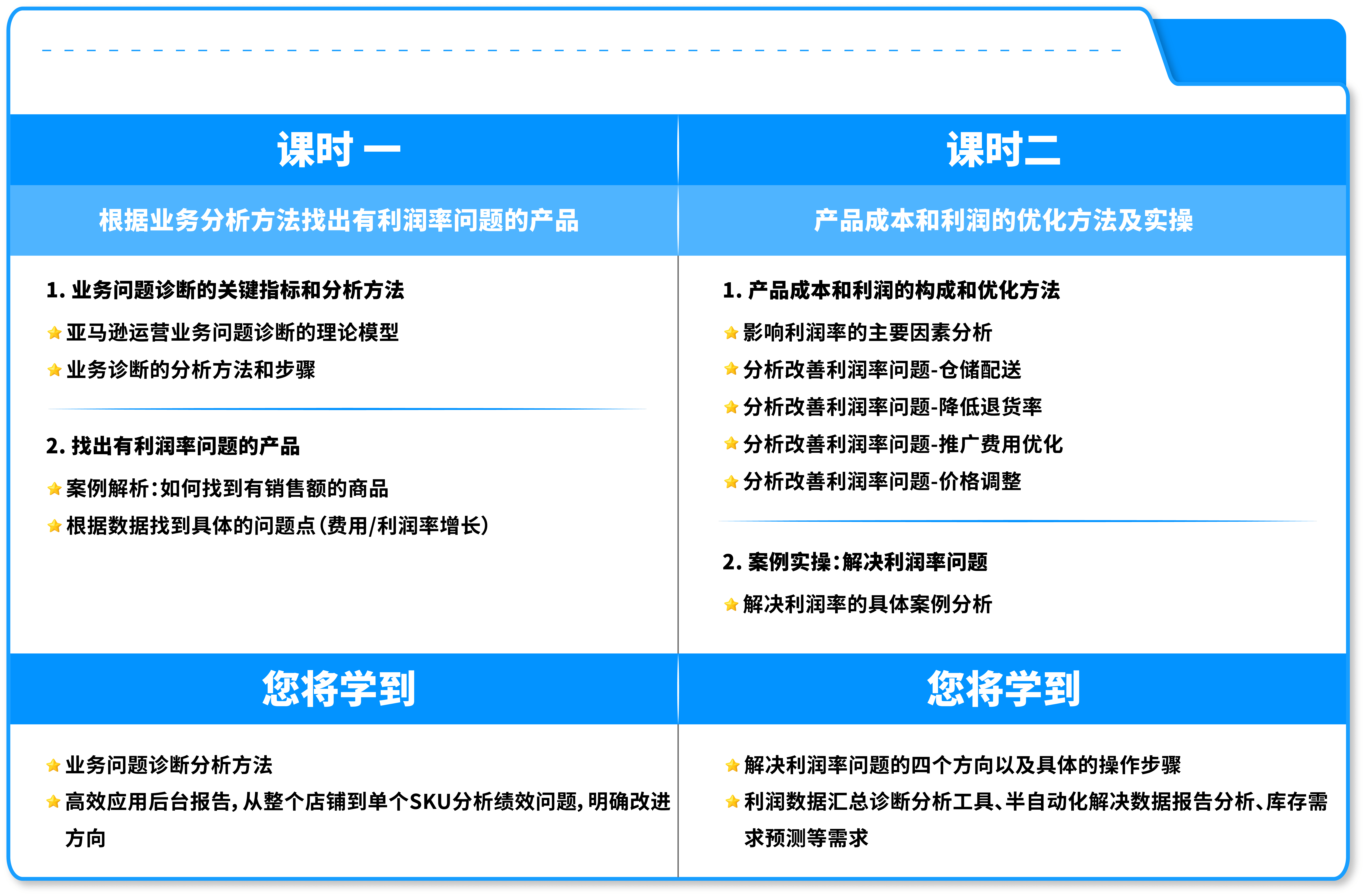 本课程系统讲解亚马逊业务分析方法,通过数据分析定位利润率问题