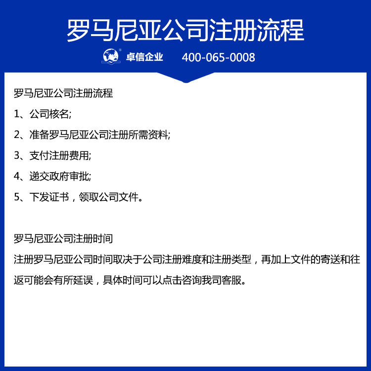 罗马尼亚支持公司全程线上注册,提交材料后审批周期约 7 - 14 个工作日,名称预核准更是 1 个工作日内就能完成核验。同时对投资者身份限制宽松,有限责任公司仅需 1 名股东即可设立,股东和董事不限国籍,也可由自然人或法人担任,决策与管理结构简单,方便企业灵活调整运营策略。
