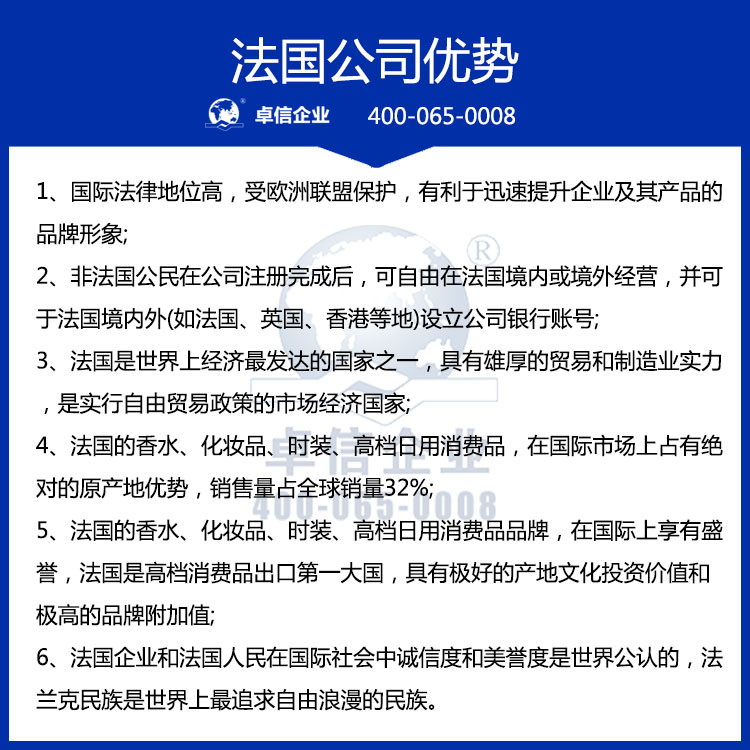 “法国制造” 在全球范围内等同于品质、奢华与高端的标签,尤其在奢侈品、化妆品、葡萄酒、高端时尚等领域口碑极佳。注册法国公司能借助这一地域品牌效应为自身品牌背书,天然提升品牌在消费者心中的可信度与溢价空间。这种品牌增值不仅能助力企业在市场推广中更具竞争力,还能在商业谈判、客户合作中赢得更多信任与主动。