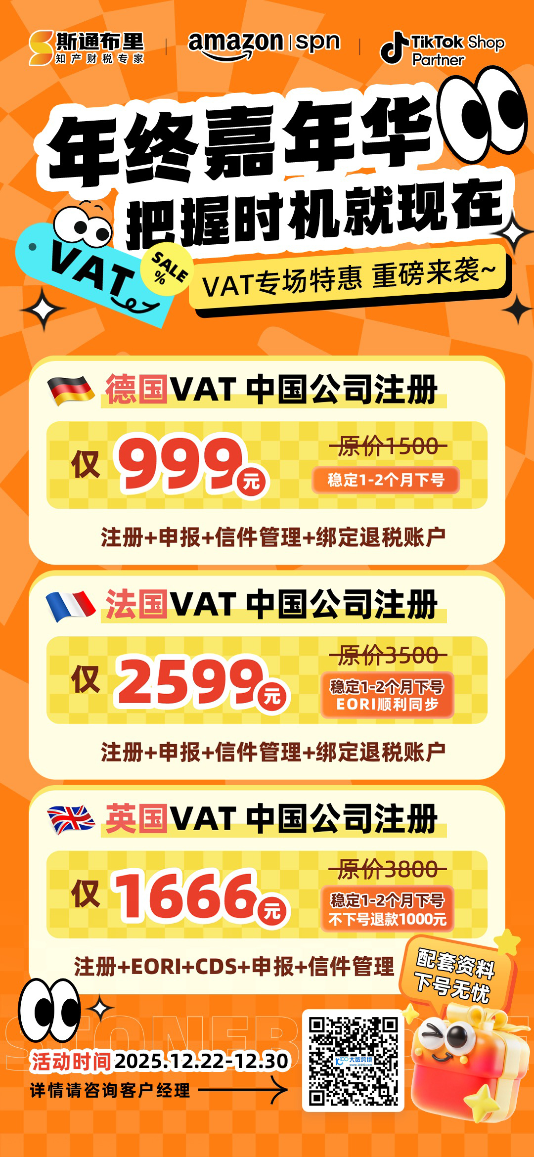 斯通布里VAT专场特惠,重磅来袭~年终嘉年华,把握时机就现在!活动时间2025年12月22日至12月30日。
