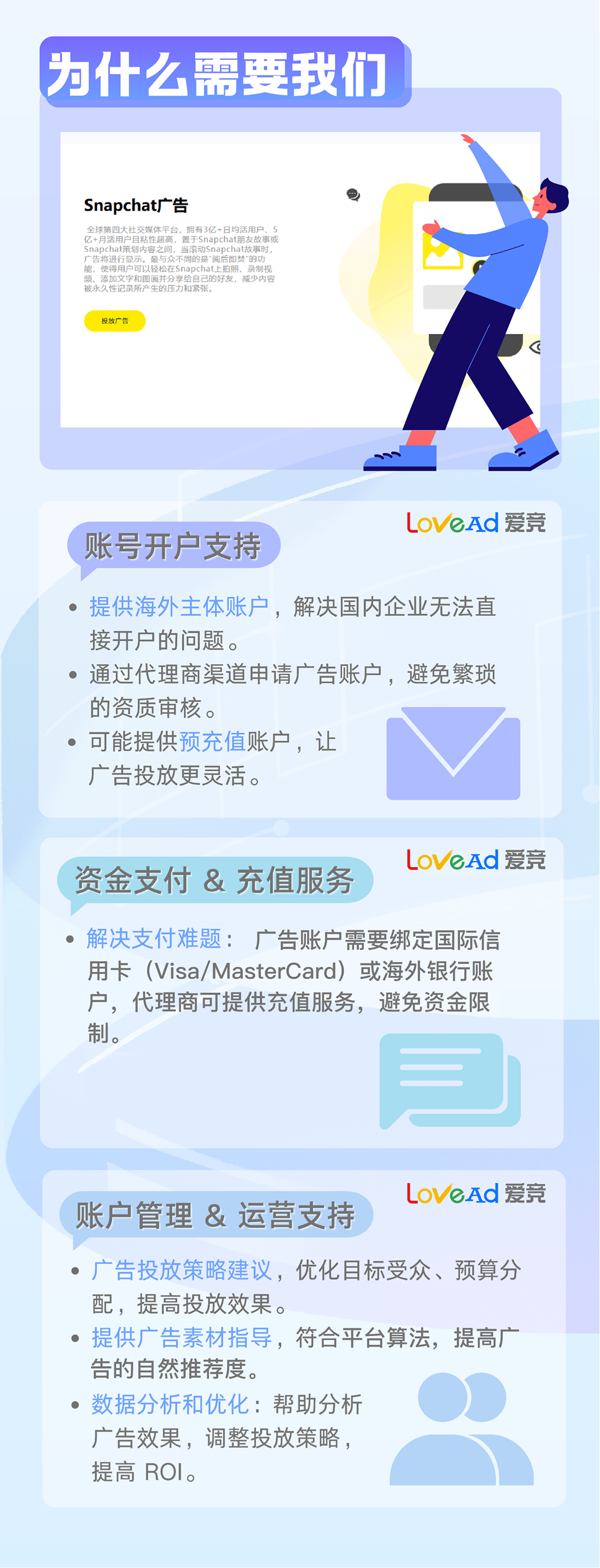 我们提供专业的SnapChat广告代开户服务,快速开通高质量广告账户,稳定投放,助力企业高效营销。安全合规,资质齐全,满足各种投放需求,欢迎咨询!