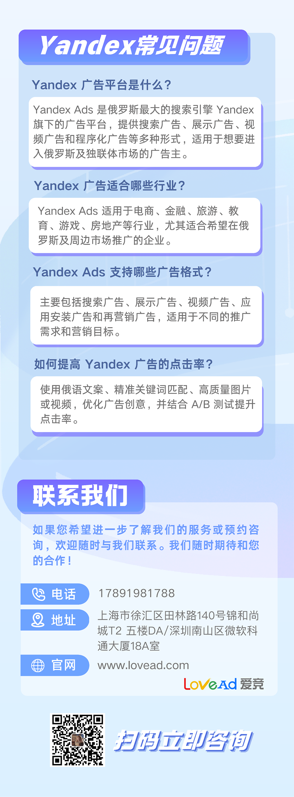 我们提供专业的Yandex广告代开户服务,快速开通高质量广告账户,稳定投放,助力企业高效营销。安全合规,资质齐全,满足各种投放需求,欢迎咨询!