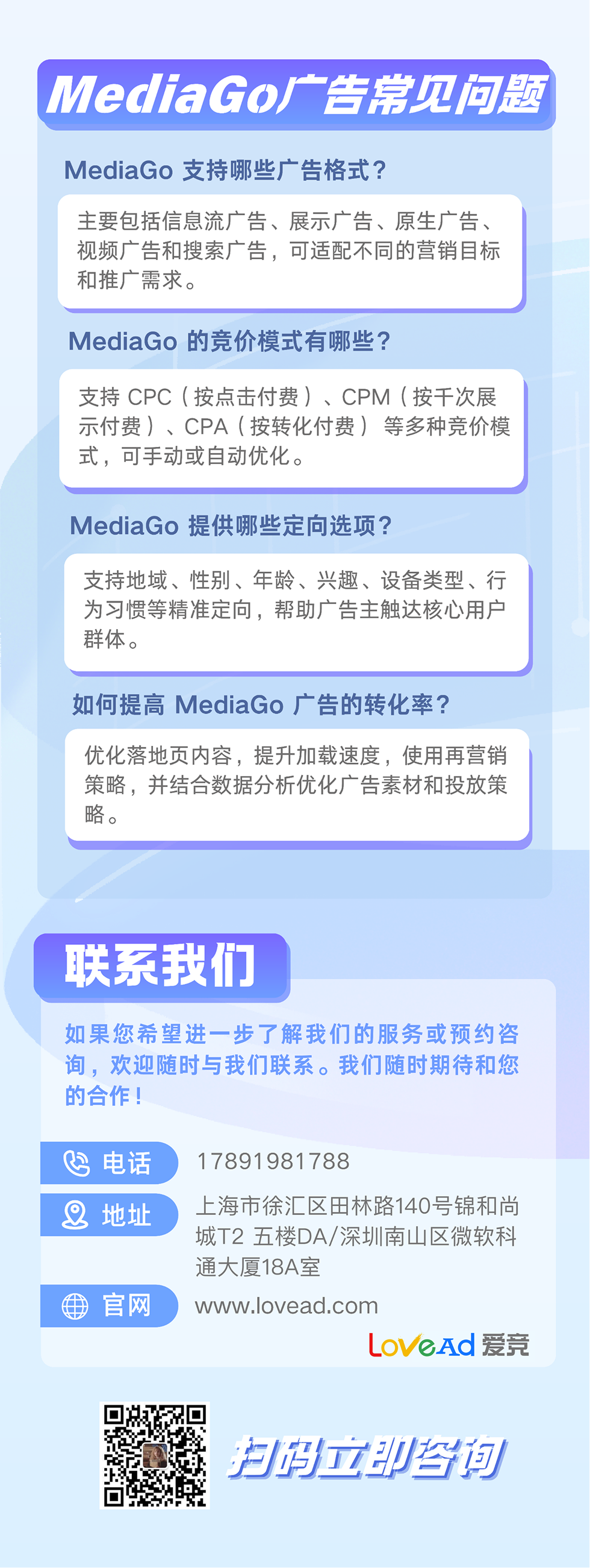 我们提供专业的Mediago广告代开户服务,快速开通高质量广告账户,稳定投放,助力企业高效营销。安全合规,资质齐全,满足各种投放需求,欢迎咨询!