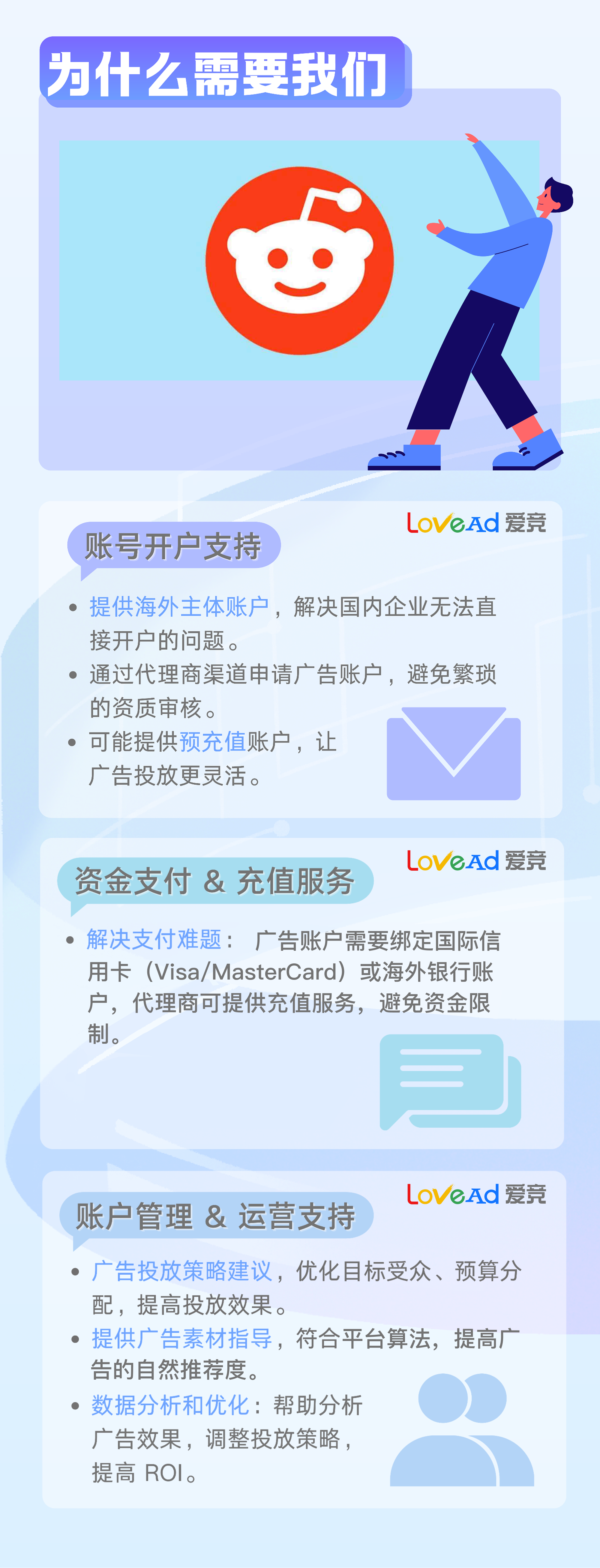 我们提供专业的Reddit广告代开户服务,快速开通高质量广告账户,稳定投放,助力企业高效营销。安全合规,资质齐全,满足各种投放需求,欢迎咨询!