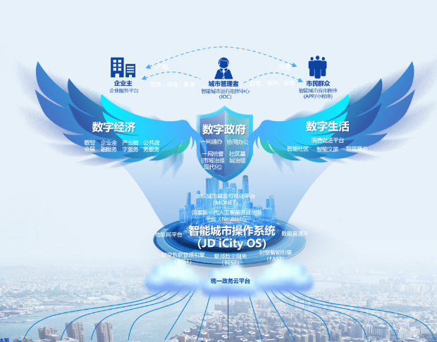 京东科技集团面向政府构建的智能城市操作系统是智能城市的数字基石,专门针对城市数据和应用场景,集采集、存储、管理、挖掘、分析、可视化于一体的智能化、开放式平台。该平台提供标准化的数据模型和组件化算法能力,以开放生态形式支持第三方伙伴快速构建自己的应用。多个城市操作系统通过智能数字网关技术实现互联互通,在保证数据安全性的前提下实现知识的共享。