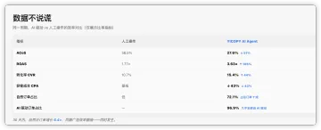 o 全面指标领先:在ACOS、ROAS、转化率、单位获客成本等所有核心指标上,AI策略均全面优于此前的人工策略。