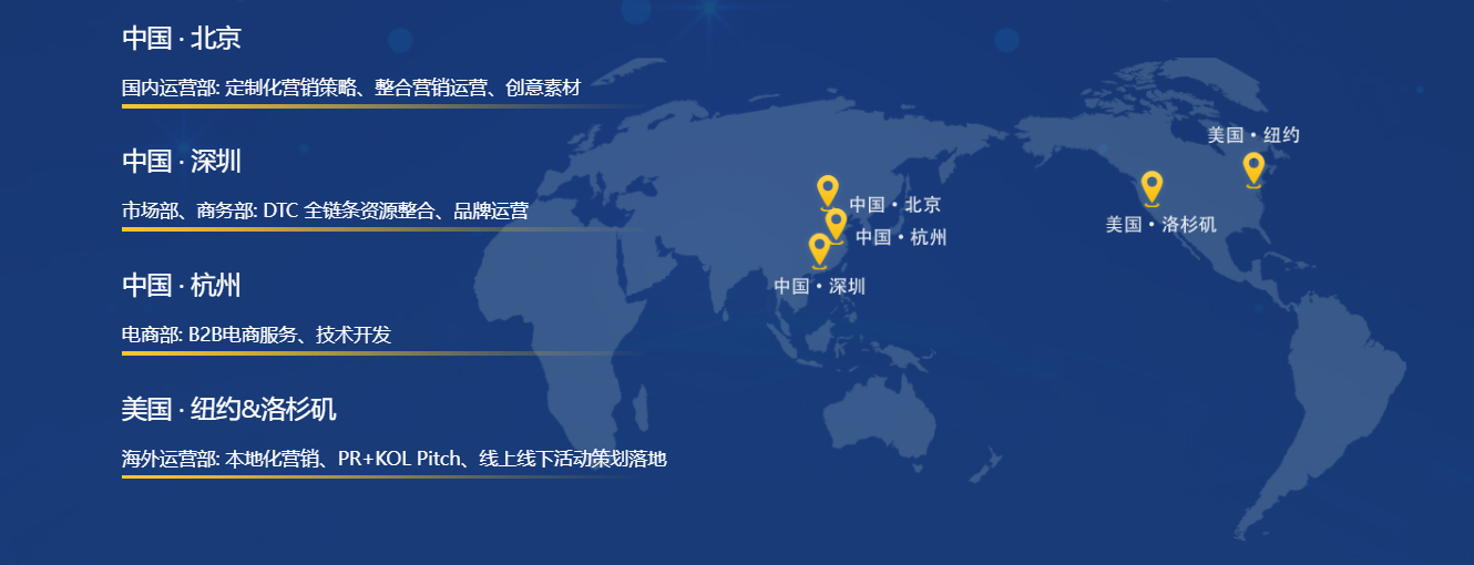 朗翰科技在北京、深圳、杭州、纽约和洛杉矶均设有分公司,团队毕业于海内外高校,国际营销经验丰富,擅长海外本土运营。凭借团队的全球化视野和深厚的线上+线下营销能力,朗翰科技帮助越来越多的中国品牌在全球市场上获得成功。