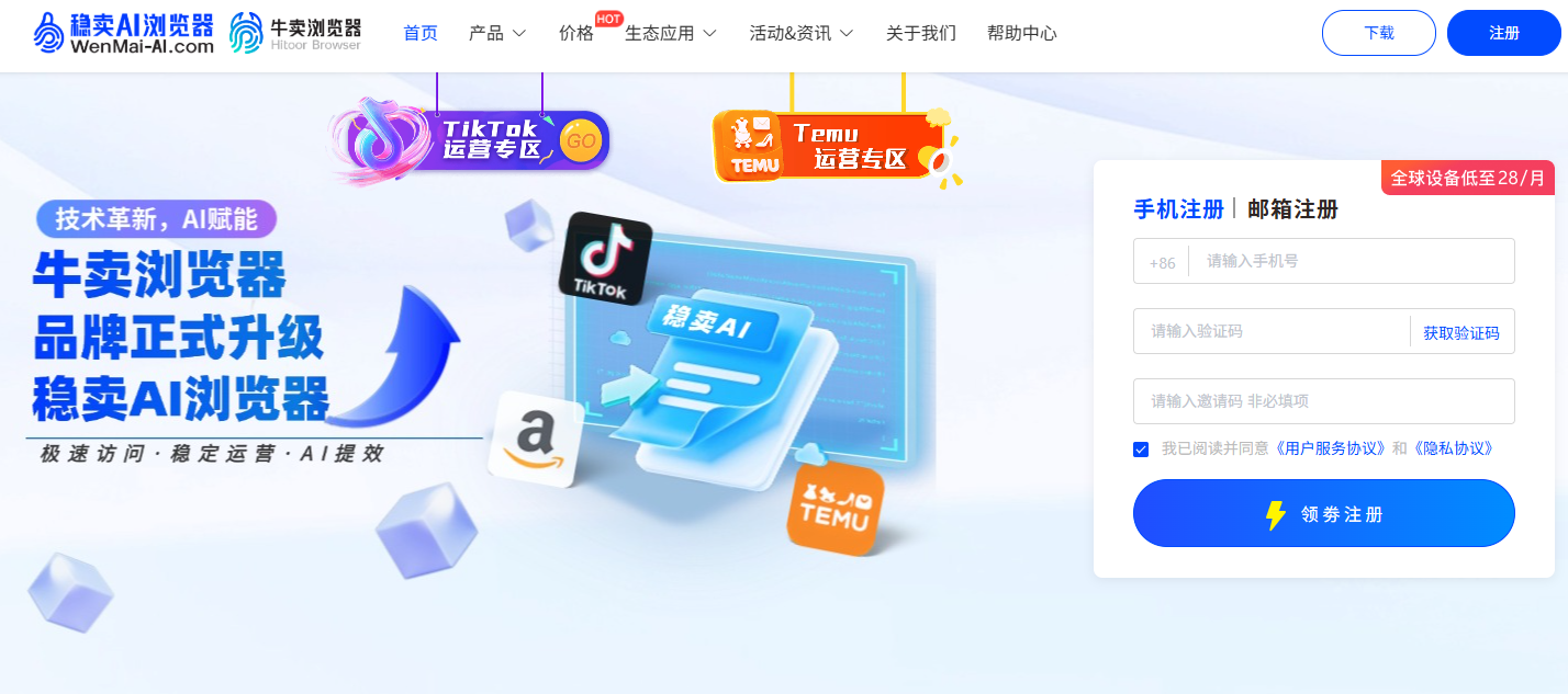 稳卖AI浏览器(Hitoor Browser)是由深圳点峰数字科技有限公司自主研发的跨境用户专属浏览器,基于全球主流 Chromium 内核深度开发。该浏览器创新性地融合容器、网络安全和浏览器技术,构建了一个以“云安全”理念为基础的开放平台。通过深度整合跨境生态核心媒体、工具和流量资源,稳卖AI浏览器全面解决了跨境用户在安全运营方面的烦恼。
