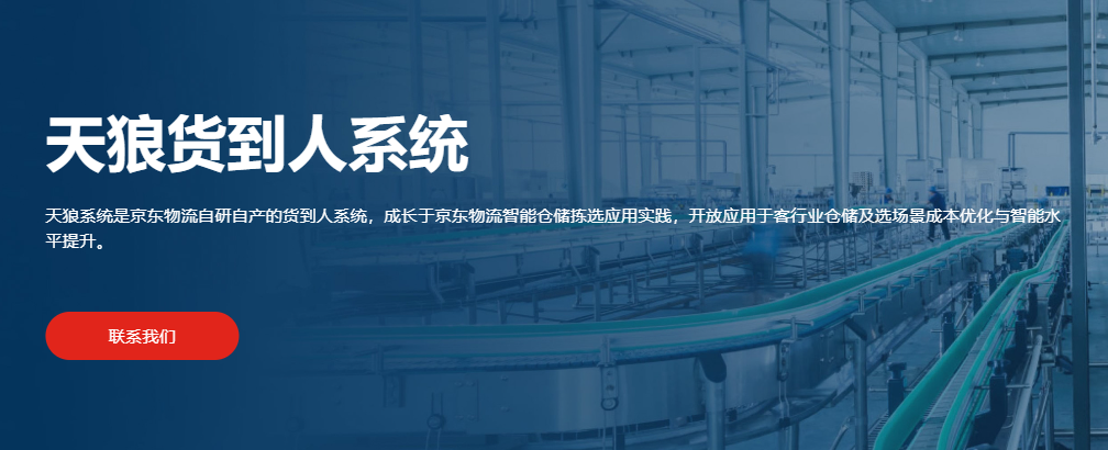 这是京东自研自产的产品,成长于京东物流智能仓储拣选应用实践,开放 应用于各行业仓储及拣选场景成本优化与智能水平提升。作为国际领先的货到人智能仓储拣选系统,“天狼”可以有效提升存储能力和拣货人效,也可以根据不同的仓储场景提供定制化解决方案,解决目前仓储物流行 业存储能力不足以及出入库效率不高等痛点,并缓解仓储占地以及人力问题。天狼穿梭车 + 立体货架 + 提升机 + 拣选工作站 + 输送系统组成。