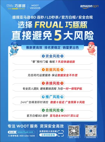 Frual Systems 巧豚豚自 2018 年起,将亚马逊全资子公司 WOOT 业务引入中国。凭借扎实专业能力与优质服务,多年来积累良好行业口碑,成为众多卖家信赖的伙伴。