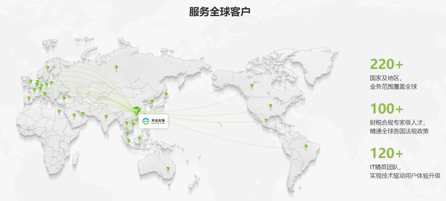天合出海拥有200+ IT研发工程师、注册会计师、律师等专家团队,深耕跨境电商行业十余年,目前已服务30000+全球企业,积极探索并实践出海企业高效运营与企业服务创新之道,为推动出海企业健康成长创造可持续的发展动力。