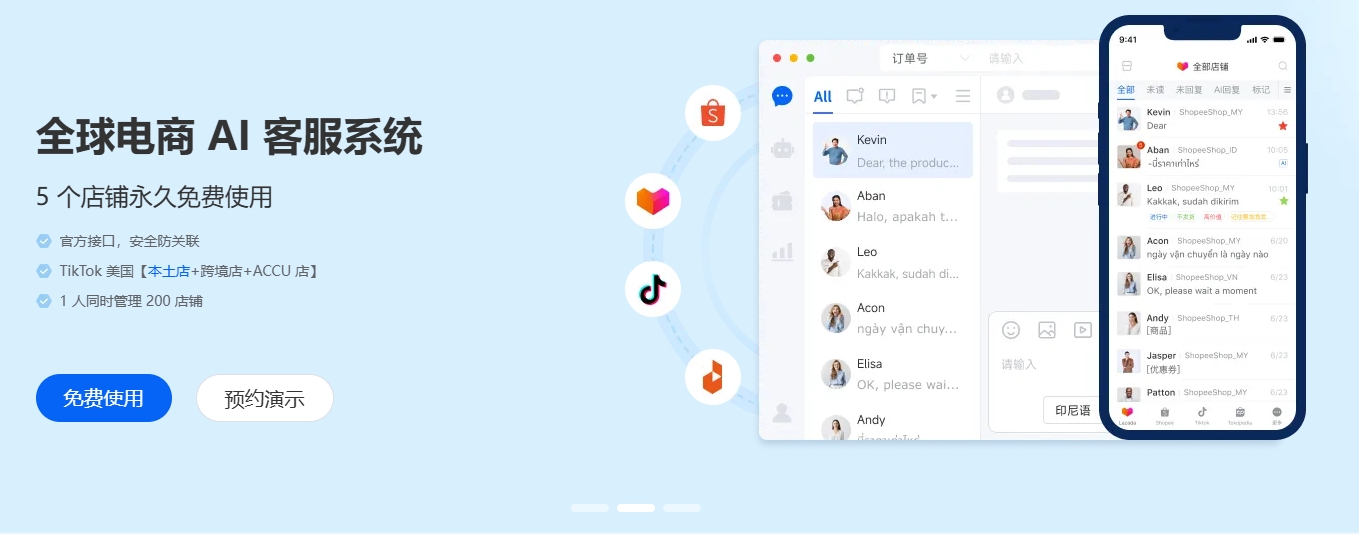全球电商AI客服系统 | 5个店铺永久免费试用