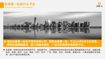 深圳拉美第一站电子商务有限公司,简称拉美第一站,于2024年6月正式启动。 聚焦拉美跨境蓝海,致力构建全链路、 一站式的跨境电商赋能平台。